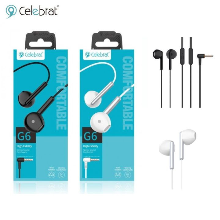 هندزفری Celebrat G6 یک مدل باسیم از برند سلبریت است که با جک ۳.۵ میلیمتری به انواع گوشی موبایل، تبلت یا لپتاپ وصل میشود. کابل این هندزفری حدود ۱.۲ متر طول دارد، که امکان استفاده راحت با فاصله مناسب از دستگاه را فراهم میکند. جنس کابل و روکش آن از پلاستیک TPE (یا مشابه) است که آن را انعطافپذیر و مقاوم در برابر گره خوردن و پارگی میکند. درایورهای صوتی آن نزدیک 10 تا 14 میلیمتر هستند (بسته به منبع) و قادرند صدایی استریو با بَیس مناسب تولید کنند. فرکانس پاسخدهی این هندزفری 20 Hz تا 20,000 Hz است — یعنی پوشش کامل محدوده شنوایی انسان برای موسیقی و مکالمه.