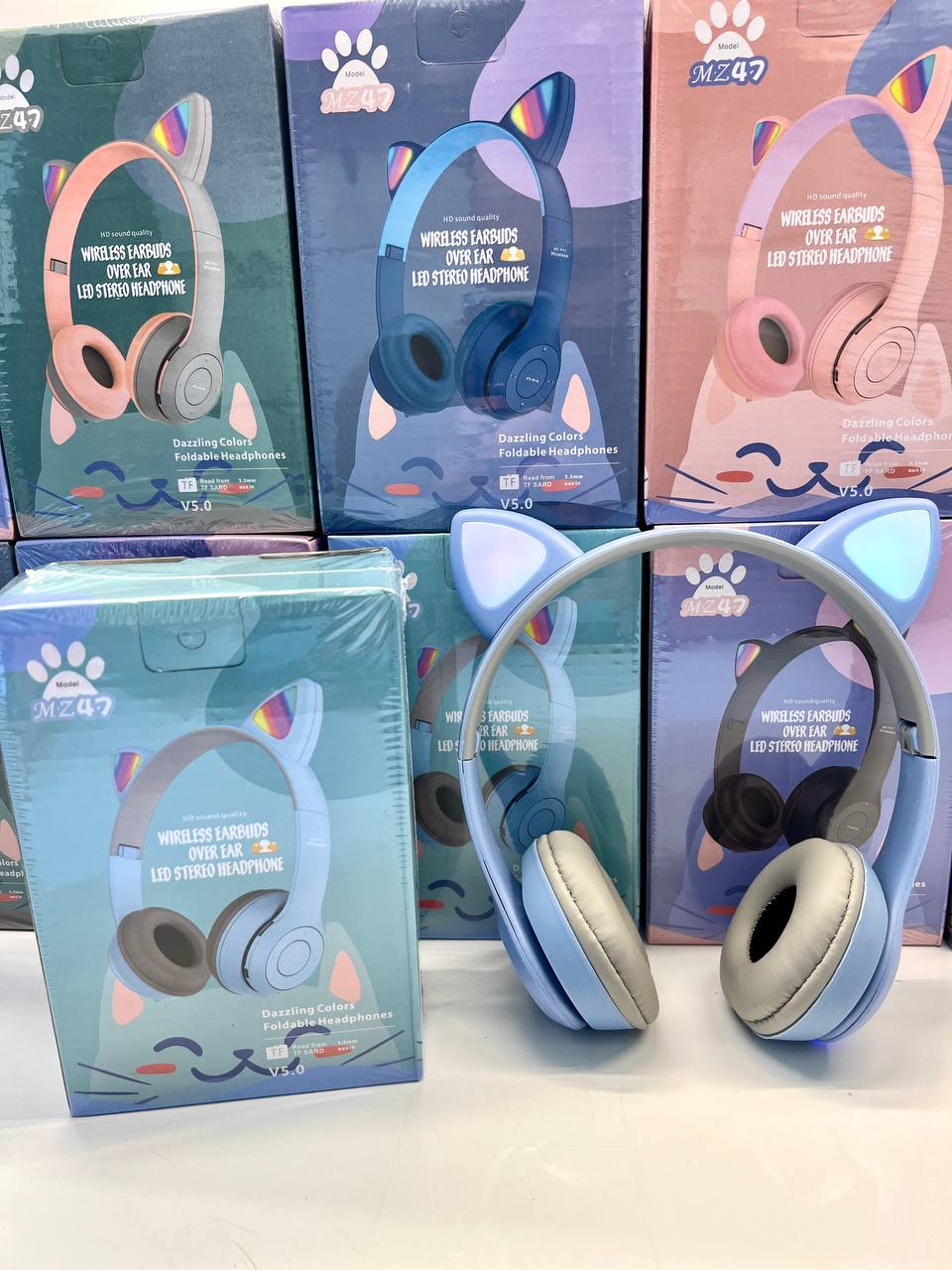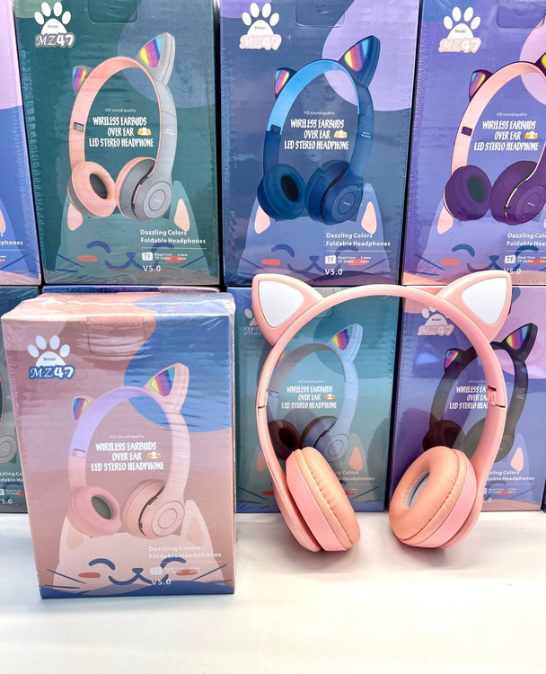 هدفون بلوتوثی گربهای MZ47 – هدست بیسیم فانتزی با نور LED و کیفیت صدای عالی