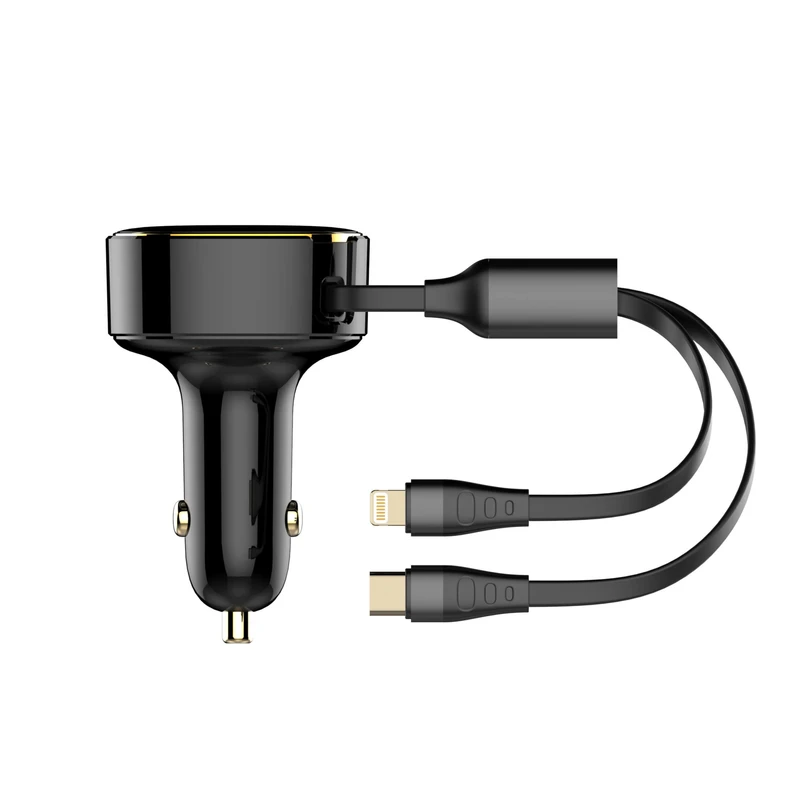 LDNIO C107 30W Fast Car Charger with Retractable Type‑C & Lightning Cable