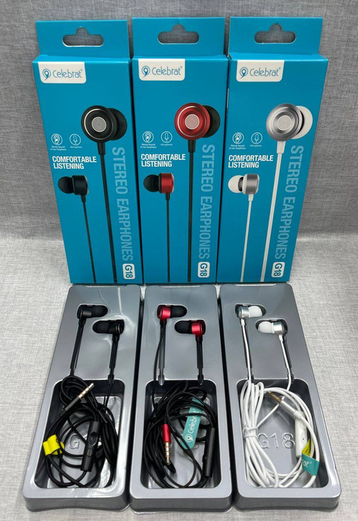1. هندزفری Celebrat G18 از نوع “تو‑گوشی / in‑ear” و با سیم است.