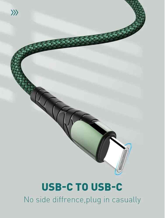دارای کانکتور های فلزی مقاوم از نوع تایپ سی، مناسب انتقال داده و شارژ با توان عبوری 65 وات پشتیبانی از فناوری شارژ سریع، کابل مقاوم در برابر کشش و خمیدگی به طول 100 سانتی متر با روکش الیاف بافته شده مجهز به محافظ پلاستیکی در قسمت اتصال کانکتور