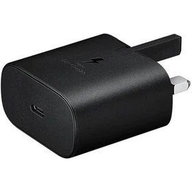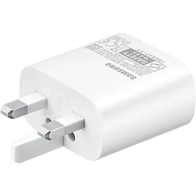 شارژر ۲۵ وات سامسونگ یک آداپتور دیواری رسمی با خروجی USB-C است، مناسب برای شارژ سریع گوشیها، تبلتها و دستگاههای سازگار با استاندارد USB PD.