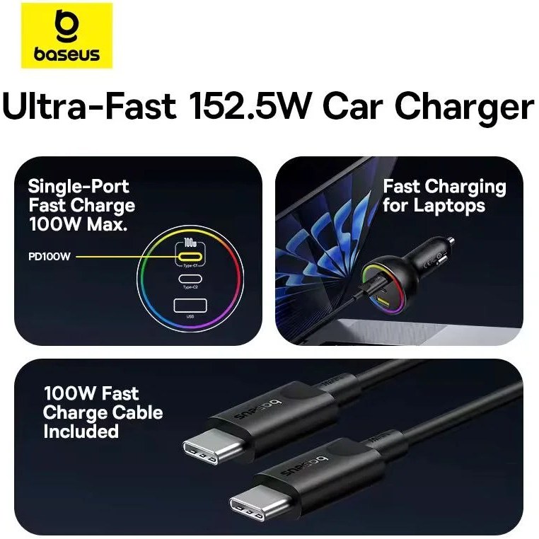 شارژر فندکی BSCC‑ZX‑CCL با ورودی ۱۲–۲۴ ولت مناسب اکثر خودروهای سواری، کامیون و SUV است. همراه دستگاه یک کابل USB‑C به USB‑C با توان ۱۰۰ وات و طول ۱ متر نیز ارائه میشود که امکان شارژ لپتاپ و تبلتهای بزرگتر را هم فراهم میکند.
