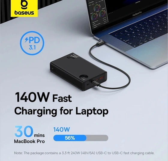 پاوربانک 140 وات باسئوس مدل Adaman ظرفیت 24000 میلی آمپر ساعت