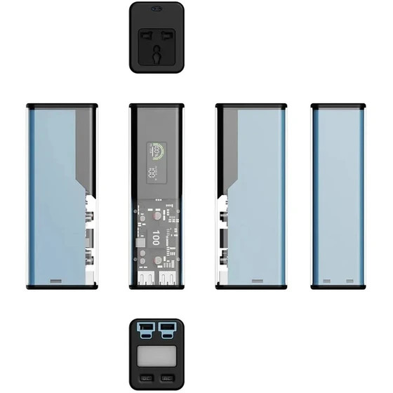 این مدل مجهز به دو پورت USB-C و دو پورت USB-A است که از فناوری PD 140W و QC 18W پشتیبانی میکند. خروجی USB-C1 تا 140 وات توان ارائه میدهد که برای شارژ سریع لپتاپهای قدرتمند کاملاً مناسب است. همچنین خروجی AC با توان 100 وات (پیک 130 وات) امکان شارژ دستگاههایی که نیاز به برق مستقیم دارند را فراهم میکند.