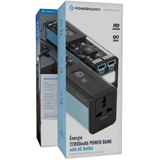 پاوربانک Powerology Énergie با پریز AC یونیورسال داخلی، یک انتخاب ایدهآل برای سفر، محل کار، کمپینگ یا استفاده حرفهای است.